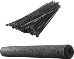 Tinklas taip pat labai patogus naudoti dėl praktiško suvyniojimo ant tvirtos kartoninės ritės, kas palengvina jo išvyniojimą ir montavimą. Pakuotėje yra 60 užveržiamųjų dirželių, leidžiančių greitai ir stabiliai pritvirtinti tinklą prie pasirinkto paviršiaus.