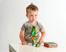 Šis medinių kaladėlių rinkinys leidžia sudėti šešis skirtingus gyvūnėlių paveikslėlius, suteikdamas vaikams smagių galimybių atrasti ir mokytis. Dėliodami ir griaudami kaladėles, vaikai mokosi apie pusiausvyrą ir priežasties bei pasekmės ryšį.