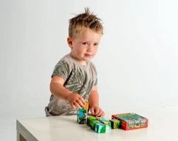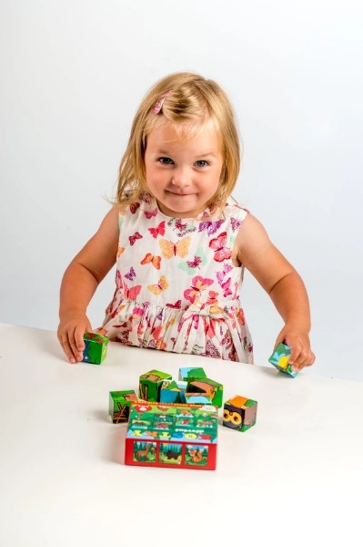 Medinės kaladėlės su spalvotais gyvūnėlių paveikslėliais yra idealios patiems mažiausiems vaikams. Jos padeda lavinti loginį mąstymą, vaizduotę ir smulkiąją motoriką.