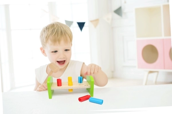 Žaislas sukurtas taip, kad padėtų vaikams lavinti smulkiąją motoriką ir rankų koordinaciją.