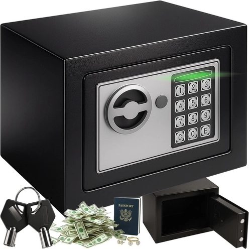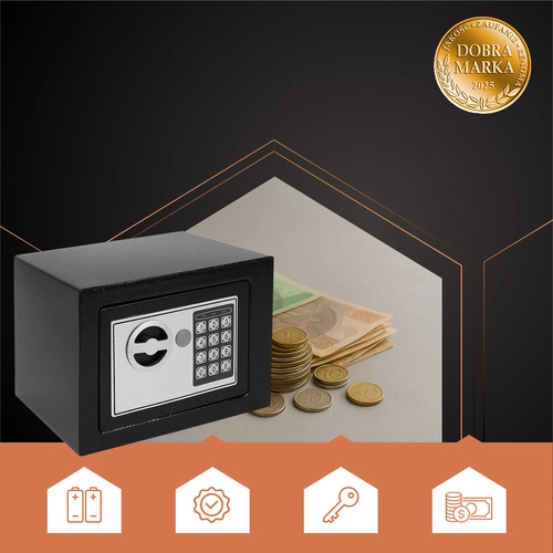 RUHHY seifas užtikrina patikimą dokumentų, grynųjų pinigų ar papuošalų saugojimą tvirtoje plieninėje konstrukcijoje. Šiuolaikinis elektroninis šifravimas garantuoja, kad prieigę valdote jūs, o avarinio rakto dėka seifą atidarysite net ir išsikrovus baterijoms. Kompaktiški matmenys leidžia lengvai įrengti spintoje, stalčiuje arba ant sienos.
