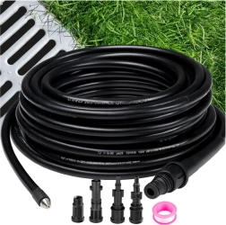 - 15 m valymo žarna, 4 adapteriai, naudojimo instrukcija, transportavimo dėžė