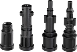 - Rinkinyje yra 4 adapteriai, tinkantys skirtingiems aukšto slėgio ploviklių modeliams