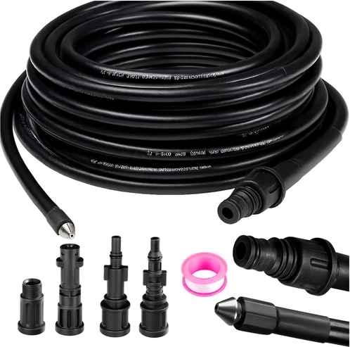 - 15 metrų lanksti žarna lengvai pašalina užsikimšimus vamzdžiuose ir nešvarumus nuo plytelių