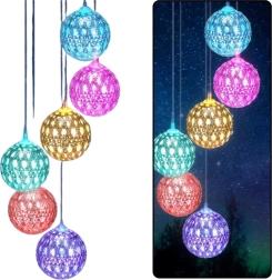 Ši lempa susideda iš šešių ažūrinių rutulių, pakabintų ant plonų virvelių, kurie švelniai švyti ir atspindi integruotų RGB LED diodų šviesą. Dėl saulės energijos maitinimo nereikia jokių laidų ar baterijų – tai ekologiškas ir patogus sprendimas. Integruotas prieblandos jutiklis automatiškai įjungia šviesą sutemus.