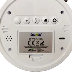 Izoxis žadintuvas turi ryškų ir lengvai įskaitomą ekraną su dideliais skaičiais bei šias papildomas funkcijas: