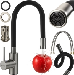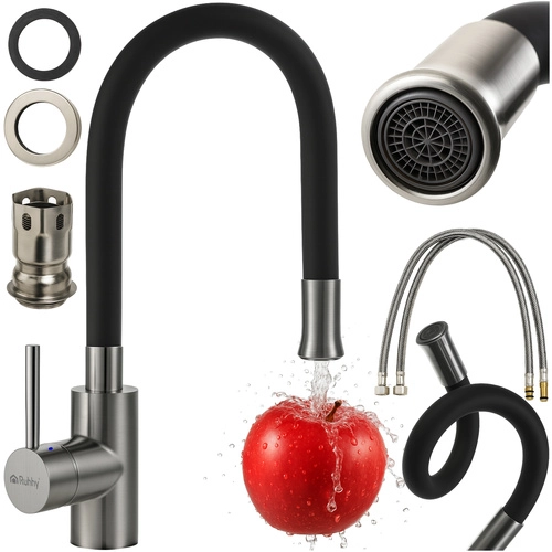 Pristatome virtuvinį maišytuvą RUHHY, kuris yra ne tik elegantiškas, bet ir praktiškas. Jis siūlo viską, ko reikia patogiam darbui virtuvėje: