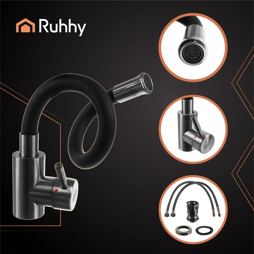 Virtuvinis maišytuvas Ruhhy suteikia komfortą ir taupymą jūsų virtuvėje dėl 360° lanksčio snapo, srovės perjungiklio ir aeratoriaus. Mėgaukitės paprastu montavimu, ilgu tarnavimo laiku ir lengvu valymu.