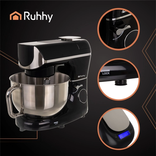 Virtuvinis kombainas RUHHY pakelia namų kepimą į aukštesnį lygį. Šildomas dubuo paspartina duonos, picos ir mielinių pyragų tešlos kildinimą, o integruotos svarstyklės ir laikmatis leidžia tiksliai dozuoti ir kontroliuoti laiką. Su 11 greičių, 25–45 °C temperatūros reguliavimu ir dideliu aiškiu ekranu viską valdysite tiksliai – nuo lengvų kremų iki tirštų tešlų.