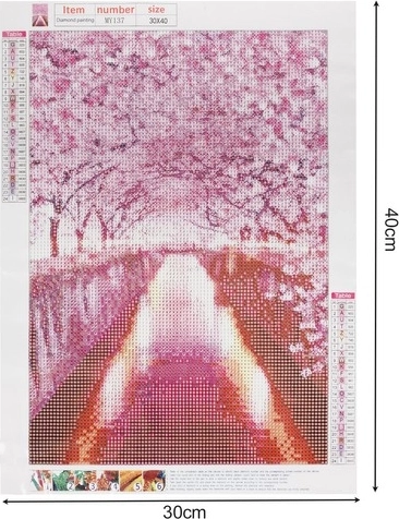 Atraskite atpalaiduojantį deimantinės tapybos pasaulį ir susikurkite savo meno kūrinį su romantiškos sakurų alėjos motyvu. Rinkinyje yra viskas, ko reikia, jis puikiai tinka tiek pradedantiesiems, tiek pažengusiems. Dėl koduoto drobės pagrindo darbas yra lengvas ir tikslus, o baigtas paveikslas spindi švelniu, žvilgančiu blizgesiu. Puikus būdas pailsėti, ugdyti kūrybiškumą ir sukurti originalią interjero dekoraciją.