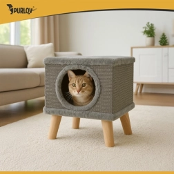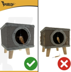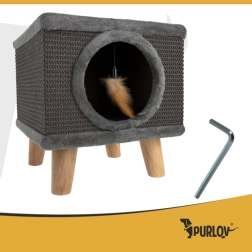 Ieškote kompaktiško ir modernaus sprendimo savo katei? Katės namelis PURLOV suteikia jaukią slėptuvę su minkštu vidumi ir kartu patvarią draskyklę iš natūralaus sizalio šonuose. Paaukštintas dizainas ant tvirtų medinių kojelių garantuoja stabilumą net audringų žaidimų metu, o neslystančios kojelių galvutės saugo grindis.