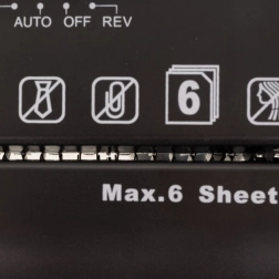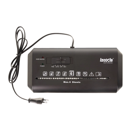 Galingas IZOXIS dokumentų smulkintuvas su 10 l šiukšliadėžės talpa siūlo automatinį start/stop, atbulinę eigą nuo užstrigimų ir saugumo lygį P‑2 kasdieniam dokumentų naikinimui. Pjausto į 6 mm juosteles, įveikia iki 6 A4 lapų vienu metu ir dirba 2 m/min greičiu – idealus namų biurui ir mažai įmonei.