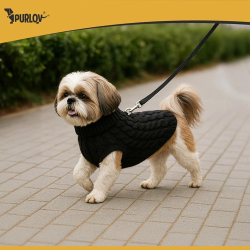 Šiltas megztas PURLOV megztinis išlaikys jūsų augintinį šiltai ir patogiai net vėsiais orais. Švelnūs akrilo siūlai malonūs liesti, nedirgina odos ir dėl elastingumo neriboja judesių. Lengvai užmaunamas, turi 2 angas priekinių letenų sričiai ir praktišką pavadėlio angą.