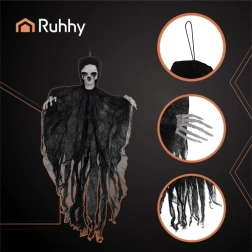 Sukurkite įspūdingą helovino sceną per akimirką. Pakabinamas skeletas RUHHY juodos spalvos variante siūlo realistišką išvaizdą, mažą svorį ir lengvą pakabinimą naudojant kilpelę. Suplyšusi tekstilė švelniai bangavoja oro sraute ir sustiprina šiurpoką efektą.