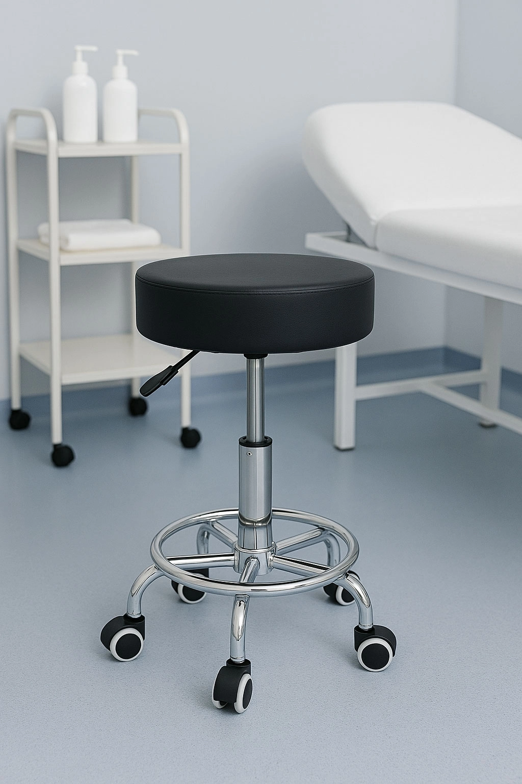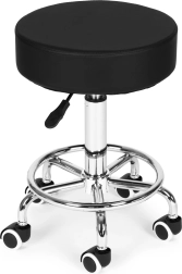 Praktiškas pasukamas suoliukas su atlošu iš ModernHome, tinkamas grožio salonams, sveikatos priežiūros įstaigoms ir namų biurui. Siūlo sklandų aukščio reguliavimą, 360° pasukimą, stabilią penkių stipinų bazę su ratukais ir apmušalus iš patvarios PVC odos su minkšta 8 cm puta. Maksimali 114 kg keliamoji galia ir tylus, tolygus judėjimas užtikrina komfortą net ir ilgai dirbant.