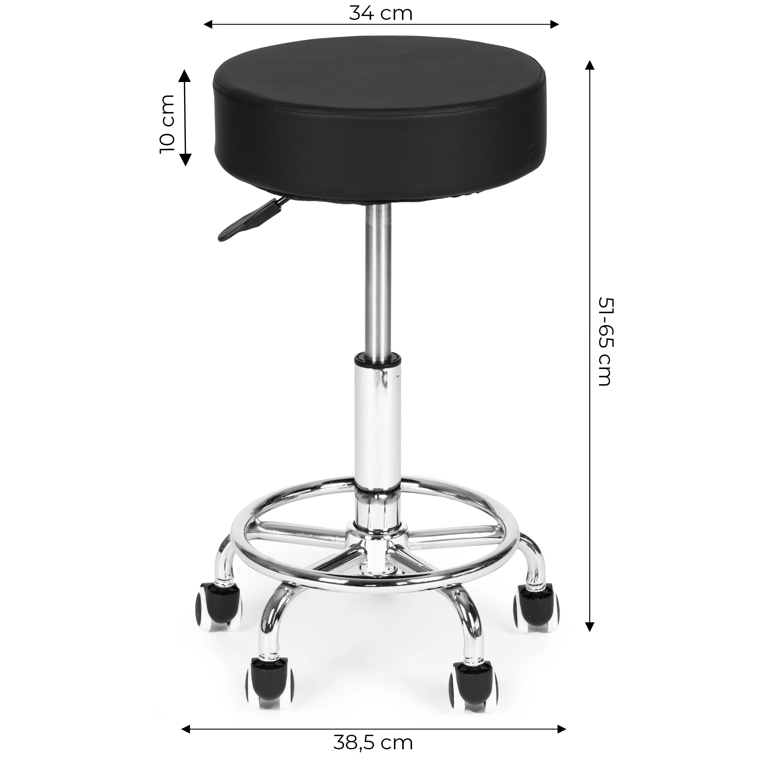 Ergonomiška sėdėsena profesionalams – suoliukas puikiai tinka kosmetologijos ir kirpyklų salonams, gydytojų kabinetams, masažo bei tatuiruočių studijoms. Sklandus pneumatinis keltuvas leidžia greitai reguliuoti aukštį, o 360° pasukama sėdynė palengvina darbą be nereikalingo stojimosi.