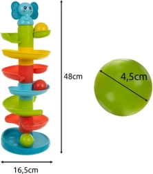 Linksmus ir saugus rutuliukų bokštas patiems mažiausiems nuo 18 mėn. siūlo spiralinį nusileidimą, ryškias spalvas ir paprastą mechanizmą, kuris skatina vaikus kartoti vėl ir vėl. Skatina smulkiosios motorikos, koordinacijos ir loginio mąstymo ugdymą. Lengvai surenkamas ir laikomas, atitinka Europos saugos standartus.