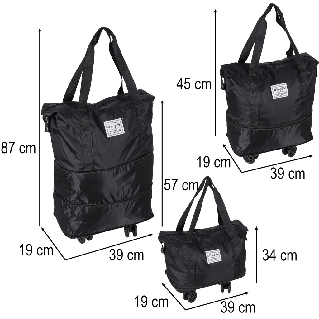 Praktiškas sulankstomas kelioninis krepšys su ratukais savaitgaliams ir ilgesnėms kelionėms. Siūlo net tris išskleidimo lygius, apie 50 litrų talpos, vandeniui atsparų Oksfordo poliesterį, 360° pasisukančius ratukus ir tvirtą užtrauktuką. Dėl nuimamų ratukų ir apgalvoto vidaus išdėstymo jis idealiai tinka patogiam pakavimui ir lengvam valdymui.
