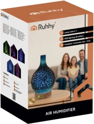 RUHHY – tai 3 in 1: oro drėkintuvas, aromato difuzorius ir dekoratyvinė LED lempa. Dėl ultragarsinės technologijos veikia tyliai ir efektyviai, nešildo vandens – idealiai tinka miegamajam, svetainei ir biurui. Veidrodinis gaubtas, kompaktiški matmenys ir silikoninės kojelės užtikrina stabilumą ir stilių bet kuriame interjere.