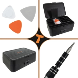 - pincetas, peiliukas, siurbtukas, korpusų atidarymo įrankiai (12 vnt., 3 variantai), POM spudgeriai (2× dvipusiai, 1× ilgas vienpusis), magnetizatorius/demagnetizatorius, antgalių adapteris naudojimui su gręžtuvu/atsuktuvu
