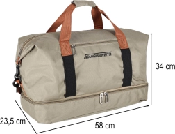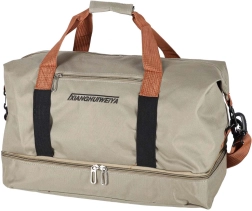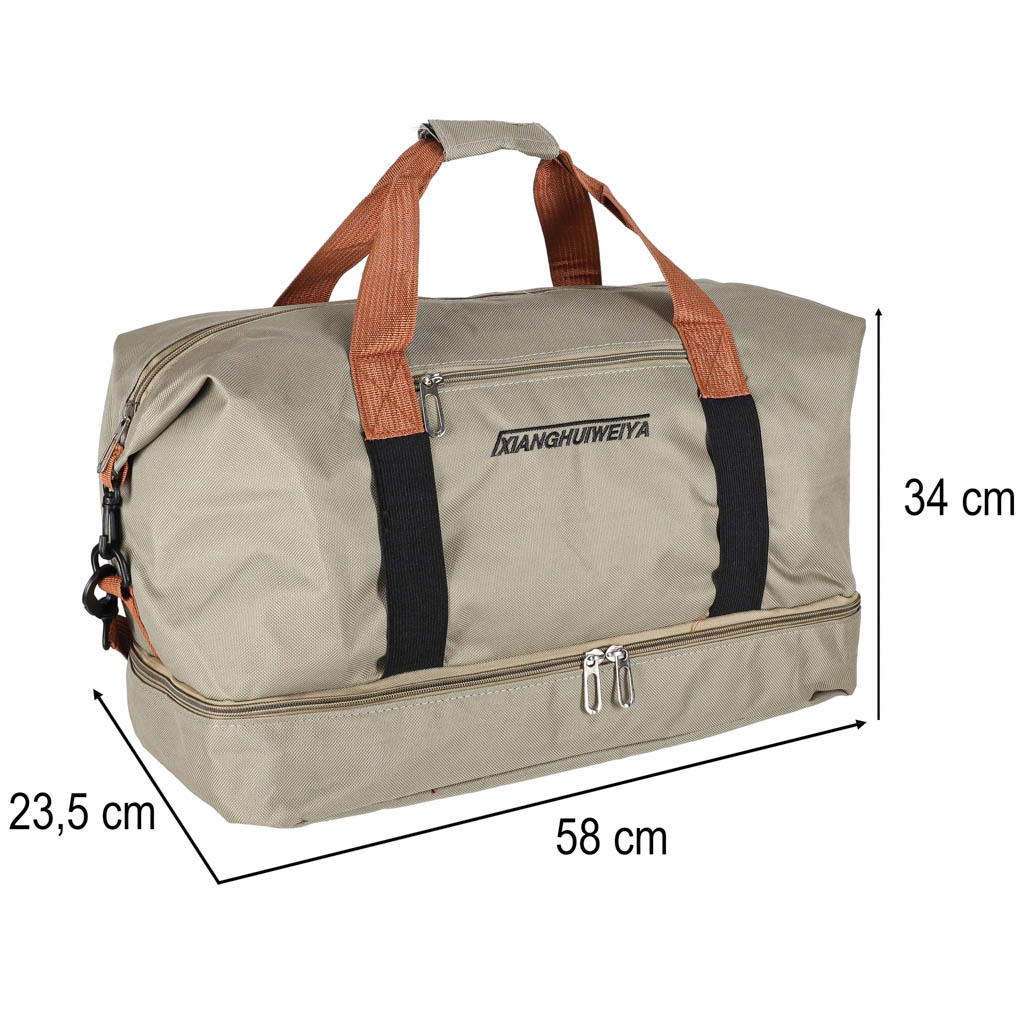 Praktiškas kelioninis krepšys elegantiškos smėlio spalvos siūlo atskirą apatinį skyrių avalynei, nuimamą ir reguliuojamą peties diržą bei patvarų Oxford 600D audinį. Puikiai tinka kaip rankinis bagažas skrydžiams ir sporto salės krepšys.