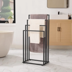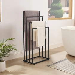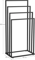 Palaikykite vonios kambarį idealiai sutvarkytą su stovu, turinčiu keturis lygius atskiram kabinimui. Atvira konstrukcija užtikrina geresnę oro cirkuliaciją ir taip greitesnį rankšluosčių, maudymosi kostiumėlių ar skalbinių džiūvimą. Minimalistinė matinė juoda išvaizda puikiai dera šiuolaikiniuose interjeruose.