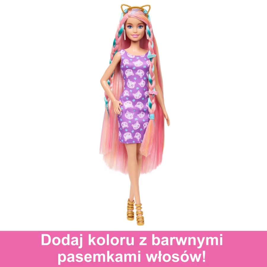 Su lėle BARBĖ Žaidimas su plaukais vaikai kuria gražias spalvingas šukuosenas ir derina stilingus drabužėlius. Lėlė turi itin ilgus plaukus (21,5 cm), o rinkinyje yra 10 kirpimo/priežiūros priedų begalinei kūrybinei pramogai.