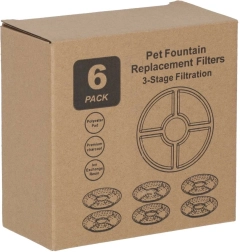Šiame rinkinyje yra 6 apvalūs filtrai, skirti gyvūnų girdyklų fontanėliams. Dėl aktyvintosios anglies ir jonų mainų dervos derinio pagerinama vandens skonis ir kokybė, sumažinami kvapai ir sulaikomos smulkios dalelės. Reguliari filtro keitimo priežiūra skatina geresnius jūsų augintinio gėrimo įpročius ir padeda išlaikyti fontanėlį puikios būklės.