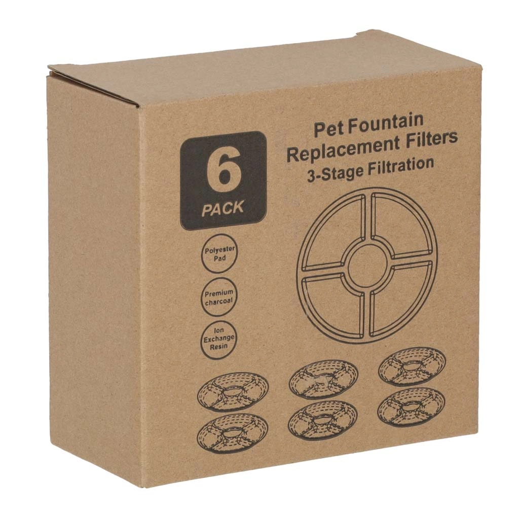 Užtikrinkite, kad jūsų augintinio vanduo visada būtų švarus ir gaivus, su 6 pakaitinių filtrų rinkiniu. Daugiasluoksnė filtracija su aukštos kokybės aktyvintąja anglimi ir dervos bei poliesterio mišiniu veiksmingai pašalina priemaišas, kvapus ir chlorą. Filtrai tinka automatiniams vandens tiekikliams šunims ir katėms, o vieno įdėto filtro pakanka iki 30 dienų.