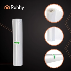Gofruota vakuuminė plėvelė RUHHY – patikimas sprendimas ilgalaikiam maisto laikymui neprarandant skonio ir aromato. Skaidri plėvelės pusė estetiškai išryškina mėsos, žuvies, sūrių ir daržovių išvaizdą, o struktūrinė pusė garantuoja efektyvų oro išsiurbimą ir kokybišką užlydymą. Universalus rankovės tipas leidžia nukirpti būtent tokį ilgį, kokio reikia – be bereikalingo medžiagos švaistymo.