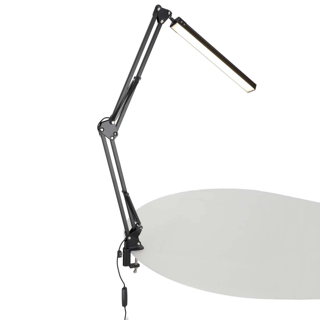 Spyruoklinės ir šarnyrinės jungtys leidžia sklandžiai reguliuoti aukštį ir kampą, tad gausite idealų kryptinį darbo apšvietimą be akinimo.