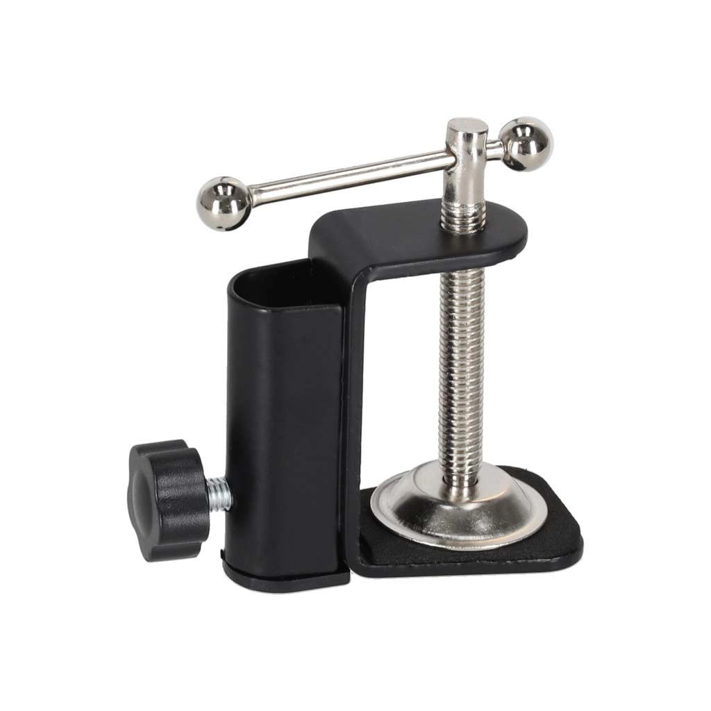 Rinkitės arba stabilią apvalią bazę lengvam perkėlimui, arba vietą taupantį C formos spaustuką tvirtam pritvirtinimui prie stalo plokštės.