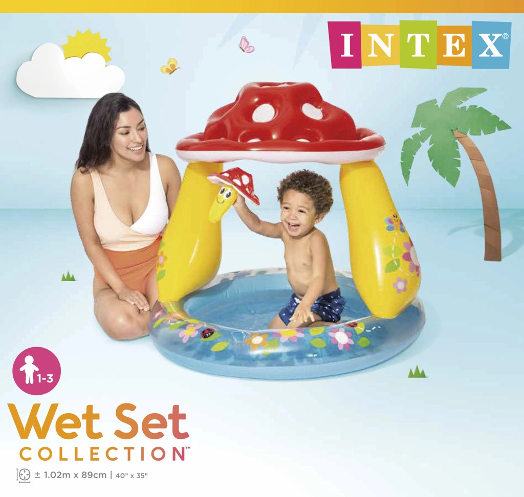 Pagamintas iš patvaraus PVC, baseinas atsparus pažeidimams ir užtikrina saugų žaidimą. Grybelio formos stogelis saugo nuo saulės spindulių, suteikdamas vaikams malonų pavėsį.