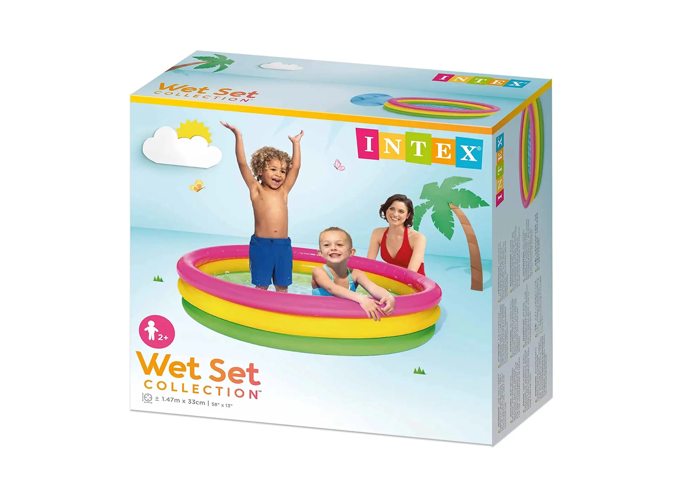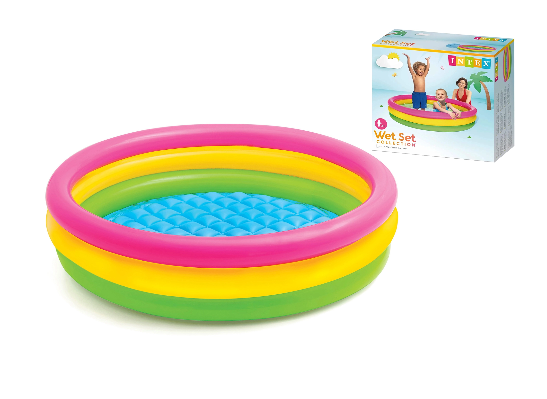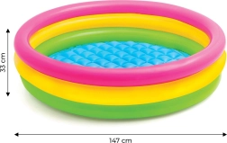 Mėgaukitės begaliniu vandens džiaugsmu savo vaikams su INTEX pripučiamu baseinu Vaivorykštė! Šis ryškus ir spalvingas baseinėlis suteikia saugią ir patogią erdvę žaidimams sode ar balkone.
