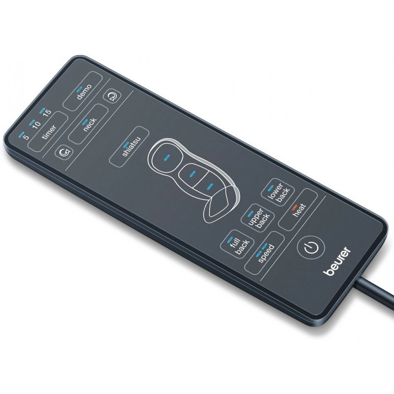 Masažą lengvai pritaikysite pagal poreikius: pasirinkite visą nugarą, tik viršutinę dalį, juosmens sritį arba atskirą kaklo masažą. Dėl 2 greičių galite perjungti tarp švelnaus atsipalaidavimo ir intensyvesnio masažo. Intuityvus nuotolinio valdymo pultas su aiškiomis zonų žymomis palengvina valdymą. Laikmatis su automatiniu išsijungimu padidina saugumą ir patogumą.