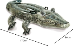 Linksmas pripučiamas krokodilas INTEX idealiai tinka baseinui, ežerui ir atostogoms. Siūlo 2 oro kameras didesniam stabilumui, 2 tvirtas rankenas saugiam suėmimui ir patvarią medžiagą su pridėta lopu. Dėl plokščio ir stabilaus paviršiaus vaikai gali saugiai sėdėti ir gulėti. Lengvas, kompaktiškas ir su realistiška išvaizda, matmenys 170 × 86 cm.