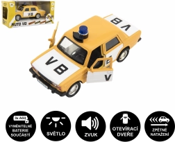 Stilingas policijos automobilio VB Lada modelis pradžiugins kiekvieną mažą policininką. Jis siūlo atbulinę trauką, šviesos ir garso efektus, atidaromas priekines duris ir kompaktišką 12 cm dydį. Rinkinyje yra 3× AG3 baterijos.