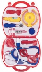 Šis spalvingas medicinos rinkinys vaikams siūlo gausią įrangą gydytojo žaidimui – nuo stetoskopo iki termometro ir švirkšto. Viskas sudėta į patvarų, lengvą lagaminėlį su tvirta rankena, tad mažieji gali atidaryti savo „klinikas“ bet kada ir bet kur. Žaidimas natūraliai padeda mažinti baimę prieš apžiūras ir supažindina su medicinos priemonėmis.