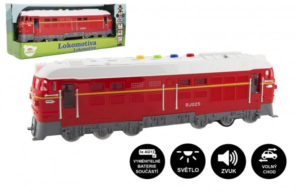 Plastikinė lokomotyvas su baterijomis, garsu ir šviesa, 35 cm – Raudona