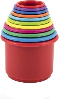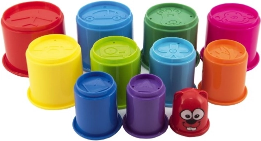 Spalvingų dėliojamų puodelių rinkinį sudaro 11 dalių, iš kurių galima pastatyti aukštą bokštą. Puodeliai yra skirtingų spalvų ir gali būti sudedami vienas į kitą – tai puikus būdas lavinti jūsų mažylio smulkiąją motoriką.