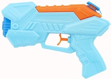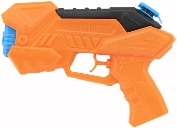 Smagus plastikinis vandens pistoletas, 19 cm ilgio, vasariškam atsigaivinimui ir žaidimams prie vandens. Paprastas pripildymas vandeniu ir lengvas purškimas užtikrina greitą veiksmą, patogų suėmimą ir daug linksmybių vaikams nuo 3 metų.