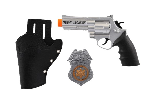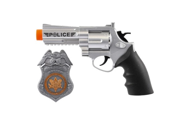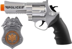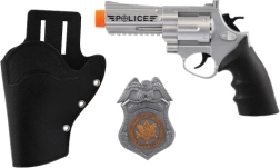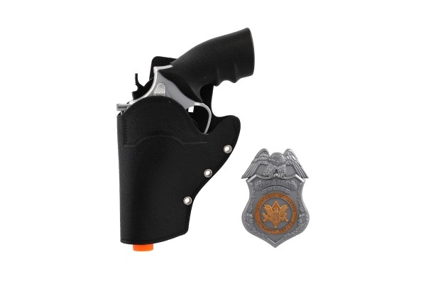 Šiame rinkinyje yra plastikinis revolveris su autentiškomis detalėmis ir saugos oranžiniu galiuku, kuris užtikrina saugesnį žaidimą.