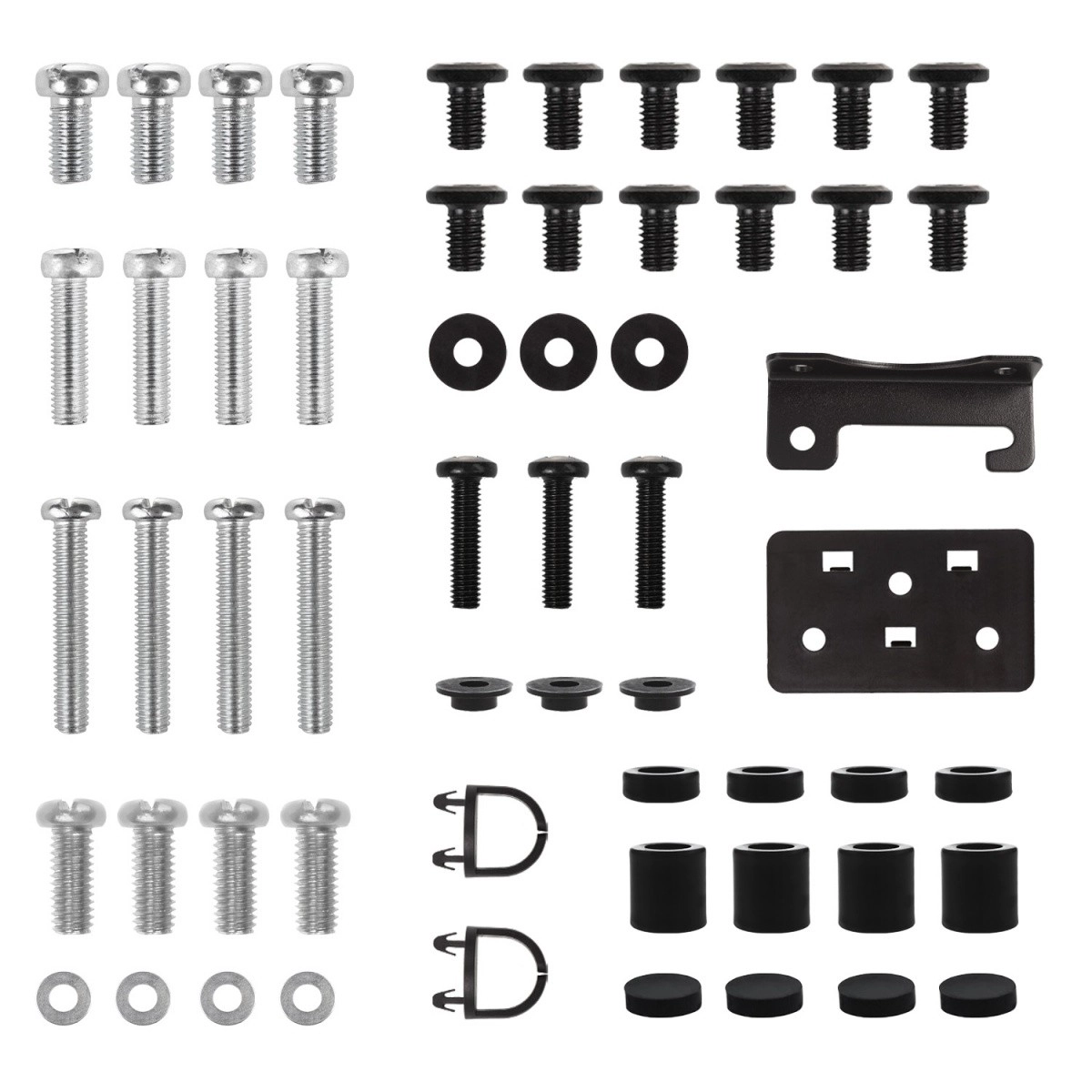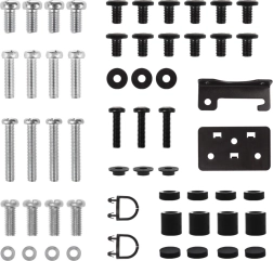Komplekte yra įvairūs varžtai, poveržlės ir tarpikliai, kad būtų paprasta ir greita montuoti be papildomų priedų paieškos.