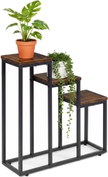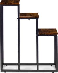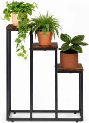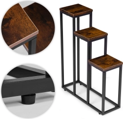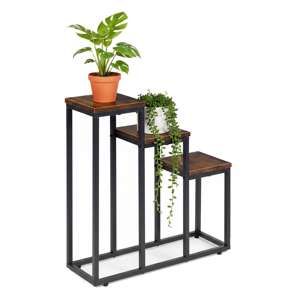 Trijų aukštų gėlių stovas industrinio lofto stiliaus derina minimalistinį dizainą ir praktišką vertikalų išdėstymą. Dėl kompaktiškų matmenų lengvai tinka mažesnėse erdvėse ir padeda išnaudoti aukštį – idealu virtuvės žolelėms, paparčiams prieškambaryje ar dekoratyviniams augalams svetainėje.