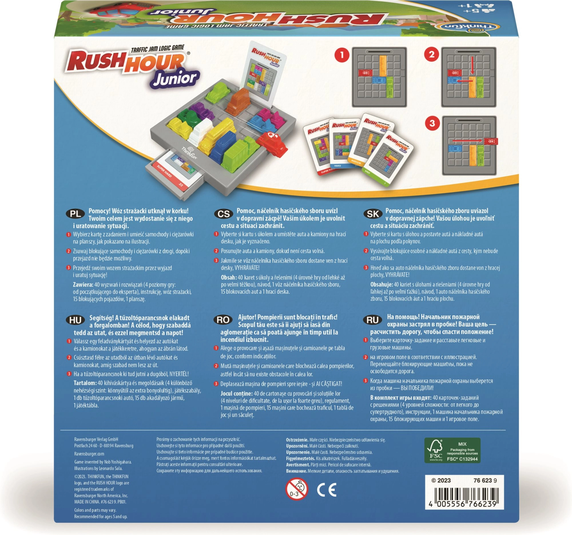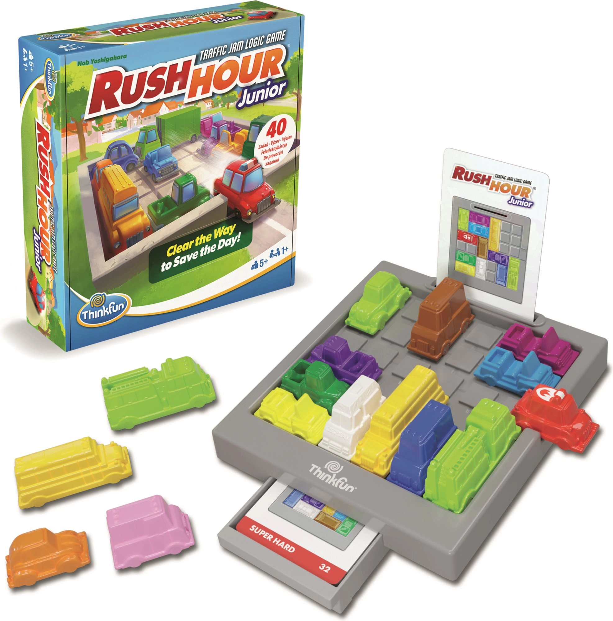 Smagus loginis žaidimas Thinkfun Rush Hour Junior išbandys mažųjų žaidėjų išradingumą ir kantrybę. Tikslas – atlaisvinti kelią gaisrinės automobiliui, stumdant kitus automobilius ant lentos pagal užduočių kortelių nurodymus. Žaidimas lavina loginį mąstymą, nuoseklų planavimą ir erdvinę orientaciją, kartu yra lengvai suprantamas ir idealiai tinka pradedantiesiems.