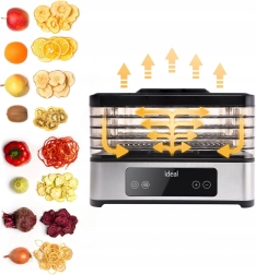 Gaminsite namuose sveikus užkandžius be konservantų su maisto džiovykle WEBBER IK3301. Ji siūlo 5 reguliuojamo aukščio aukštus (29 × 23 cm), 400 W galią, sklandų temperatūros nustatymą 35–70 °C ir laikmatį 30 min – 24 val. Konvekcinė oro cirkuliacija užtikrina tolygą džiovinimą be padėklų vartymo, tylus veikimas tinka net nakčiai, o permatomas korpusas leidžia stebėti procesą. Intuityvus LED valdymo skydelis ir lengva priežiūra paverčia šį modelį patikimu pagalbininku vaisiams, daržovėms, žolelėms ir mėsai.