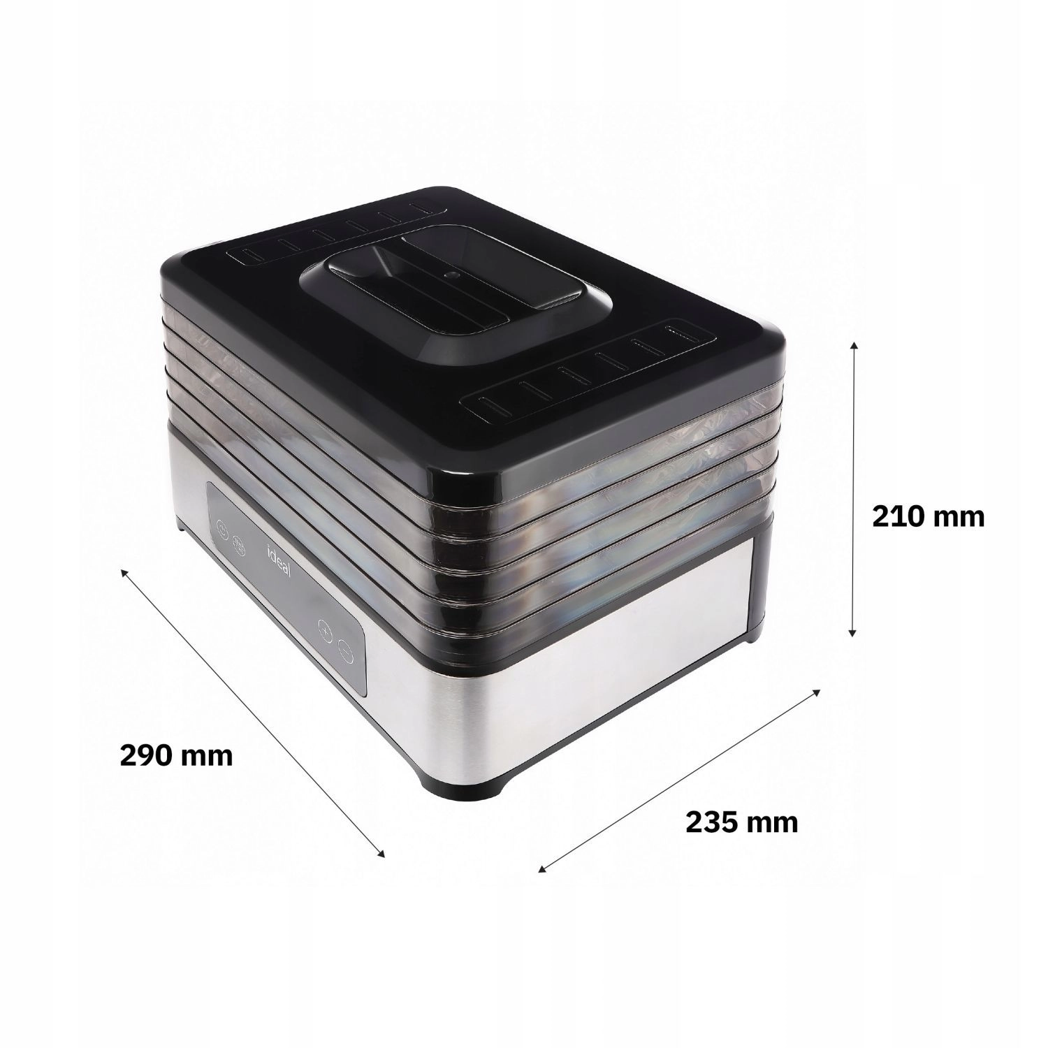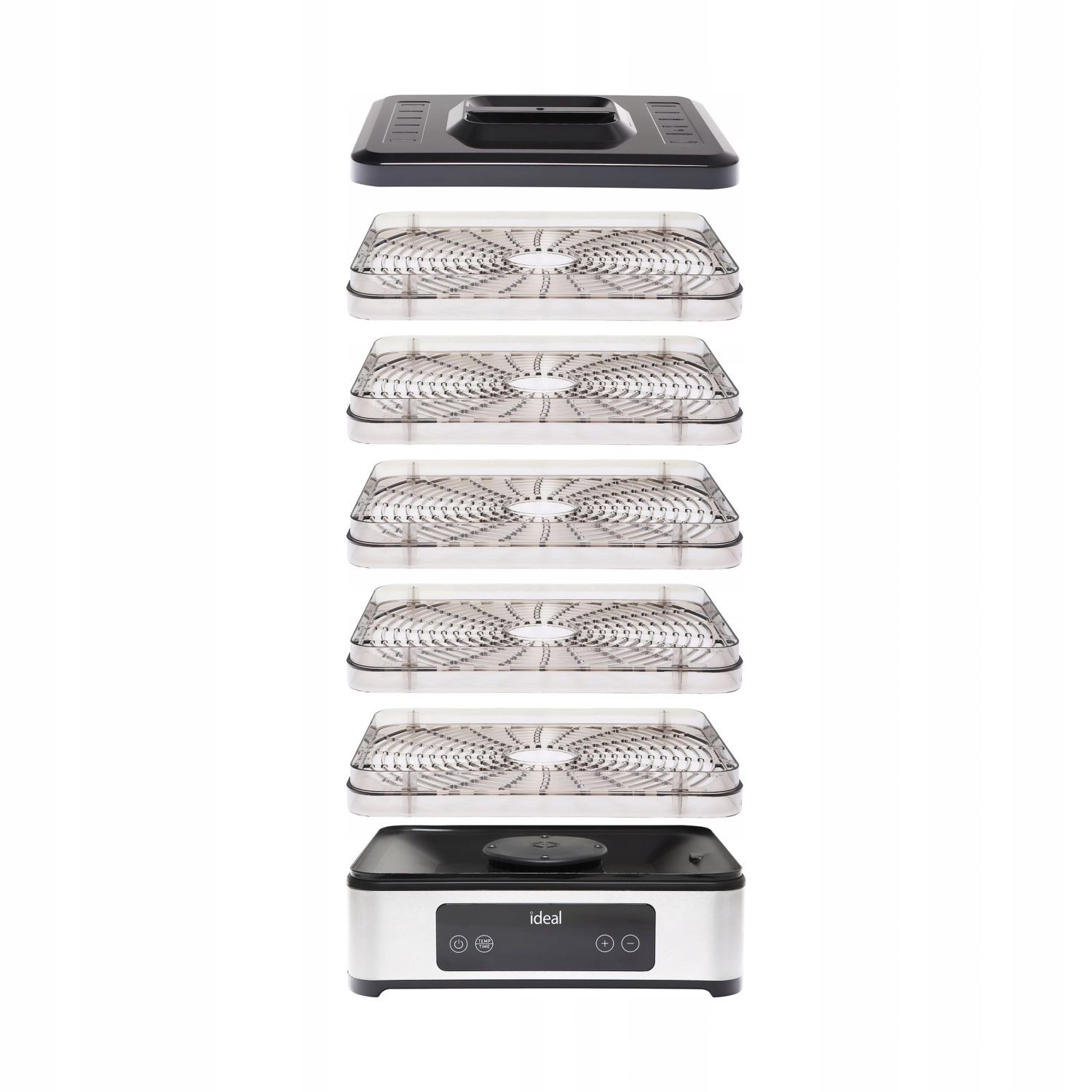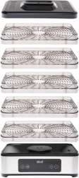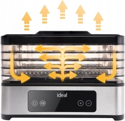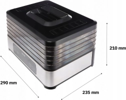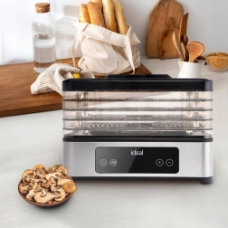 Valdymas itin paprastas dėl elektroninio LED skydelio su laikmačiu nuo 30 minučių iki 24 valandų. Tylus ir energiškai taupus veikimas tinka naktiniam džiovinimui, o permatomas korpusas leidžia nuolat stebėti eigą neatidarant. Padėklai turi reguliuojamą aukštį skirtingo storio riekelėms, o įrenginį lengva išardyti ir valyti.