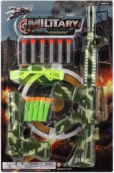 - Šautuvas, pistoletas, 11 putplasčio šovinių, apsauginiai akiniai