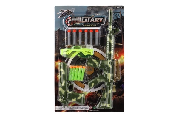 - Pilnas rinkinys: šautuvas, pistoletas, 11 putplasčio šovinių ir apsauginiai akiniai