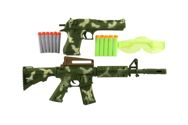 Šis mažiesiems šauliams skirtas rinkinys siūlo viską, ko reikia aktyviam, bet kartu ir saugiam žaidimui. Šautuvas turi nuimamą taikiklį tikslesniam taikymuisi, pistoletas tinka greitai akcijai, o putplasčio šoviniai užtikrina saugų naudojimą. Apsauginiai akiniai yra rinkinyje, kad žaidimas būtų dar saugesnis.